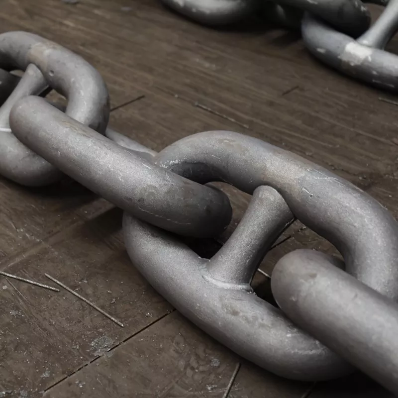 Výber materiálu určuje trvanlivosť a silu kotvového reťazca. Naša továreň používa zliatinovú oceľ na morskej úrovni (CM690, CM490,20MN, 30 mn), ktorá zaručuje pozoruhodnú pevnosť v ťahu, odolnosť voči korózii a dlhovekosti pri konštantnom vystavení morom.